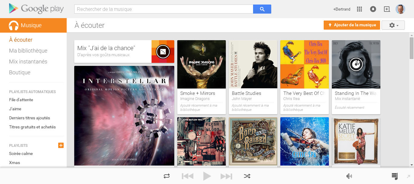 Toute ma musique, dans sa totalité est sauvegardée gratuitement sur Google Play Music. Elle est accessible de partout, de mon PC, du Web, d’un smartphone, d’une tablette. Google offre gracieusement l’hébergement de 50.000 morceaux. J’avais déjà rédigé un article complet sur ce service, je vous invite à le parcourir.