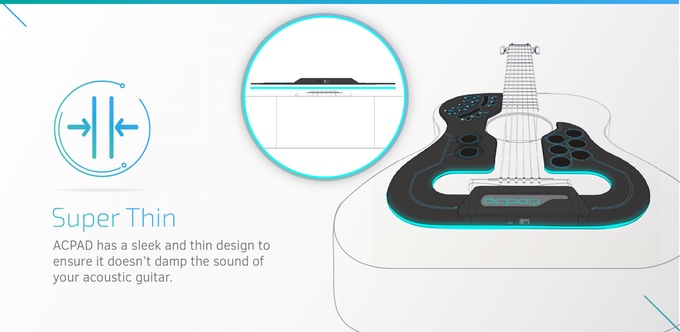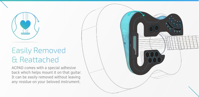 ACPAD va vous faire oublier tout ce mic-mac et vous allez contrôler tout ce petit monde d’une façon encore inconnue à ce jour. ACPAD est un dispositif tout plat à intégrer sur votre guitare. Pas besoin de colle, il se fixe de lui-même.
