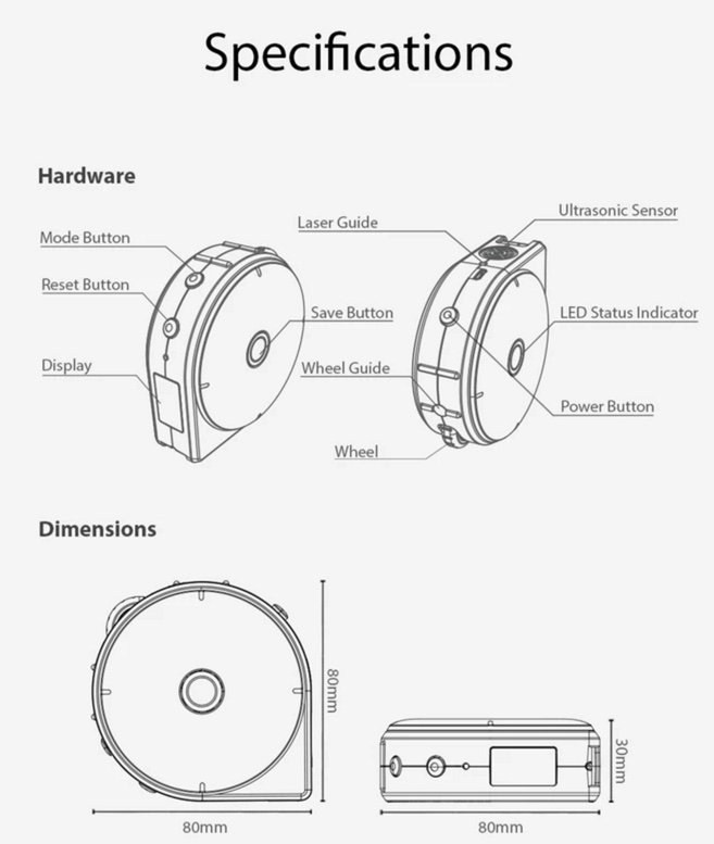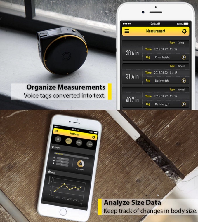 En premier lieu, il dispose d’une espèce de ficelle qui va mesurer tout et n’importe quoi, comme vous le feriez avec un mètre classique, sauf que le Bagel dispose d’un écran numérique qui vous affiche la mesure. Jusque là, pas de quoi casser douze pattes à un myriapode unijambiste.