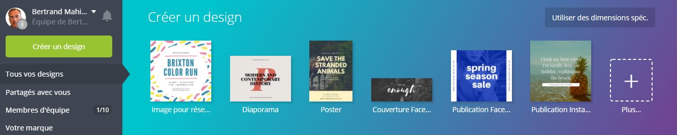 Enfin la plateforme, disponible aussi sur Android et iOS, permet de partager son travail sur les réseaux sociaux sans avoir à se soucier du format. Bien pratique, non ? En route pour Canva ?