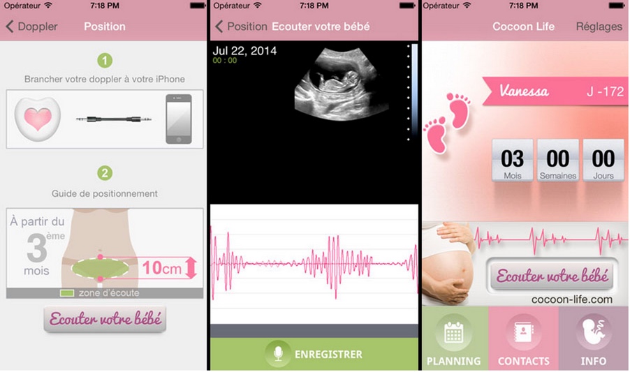 Bon, disons le tout de suite, il ne s’agit pas de remplacer les échographies mais bien d’avoir le loisir d’écouter et suivre l’évolution de bébé. Une fois l’application installée sur votre smartphone (iOS ou Android), le système vous guidera pour maintenir le doppler dans la position optimale. Ensuite, tapez simplement sur la touche “Ecouter bébé” et ses battements de coeurs apparaitront sur votre écran. Les sons du petit coeur en formation seront quant à eux disponibles au travers des écouteurs. Simple.