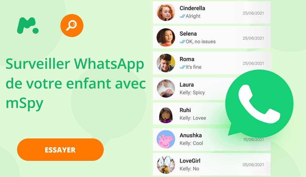 En dernier lieu, les parents soucieux de la sécurité de leur progéniture sur WhatsApp peuvent utiliser un logiciel de contrôle parental tel que mSpy. Cette application est actuellement la plateforme la plus performante en termes de surveillance du WhatsApp de votre enfant. Avec mSpy installé sur le smartphone de votre enfant, vous pouvez :