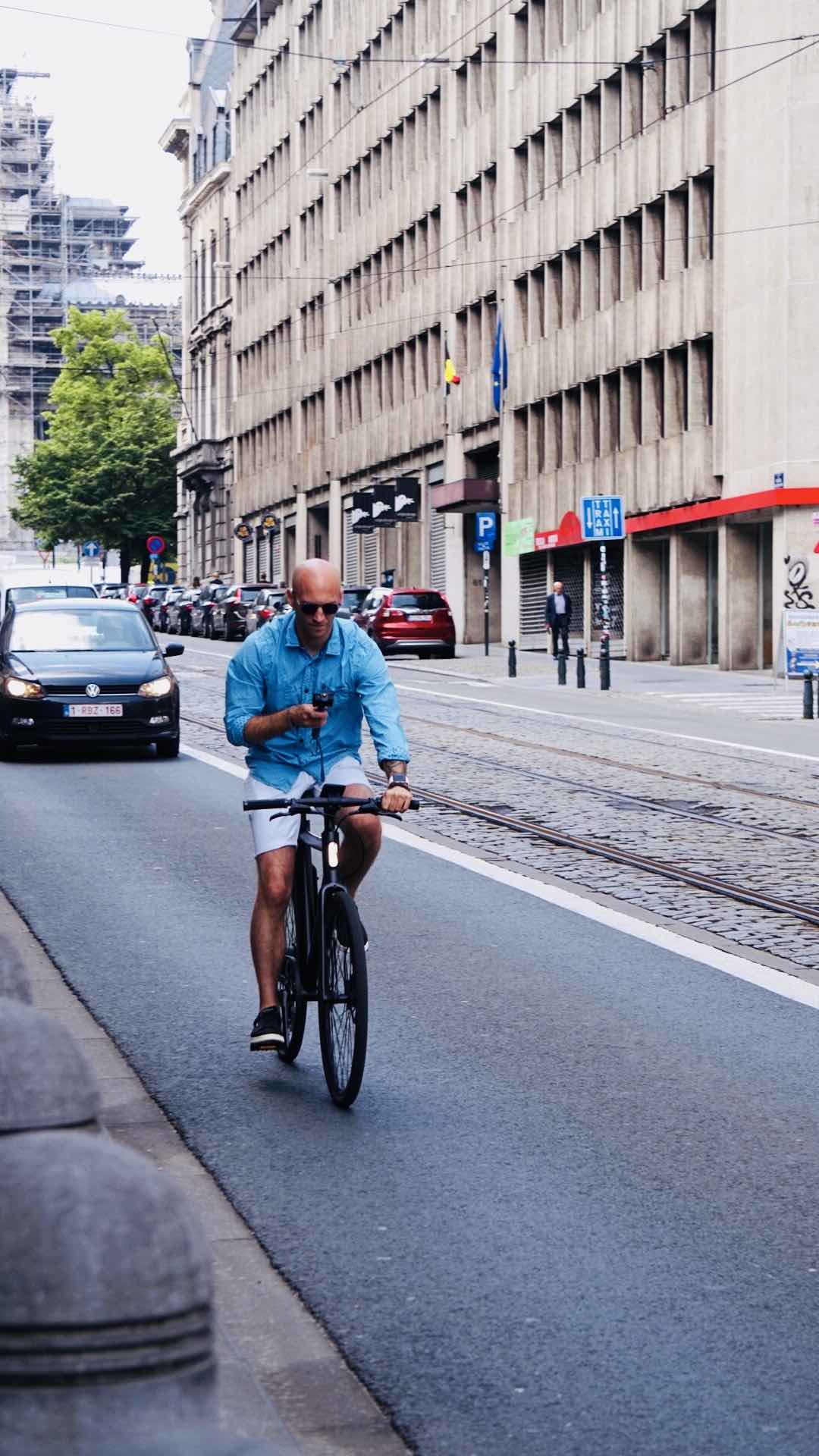 N’ayant jamais utilisé de vélo électrique, c’est avec une facilité déconcertante que je trouve directement mes marques en enfourchant le Cowboy. Le pied à peine posé sur l’étrier, je sens l’assistance électrique me “propulser” gentiment vers la sortie du QG de la startup. Tel la chanson de Gilbert Bécaud, ma guide qui ne se prénomme pas Nathalie mais bien Mélanie, m’emmène vers la place Poelaert connue pour son palais de justice et la réplique culte de notre François l’Embrouille national dans ‘Dikkenek” (Tu sors ou j’te sors..???) pour le début du test grandeur nature du vélo.