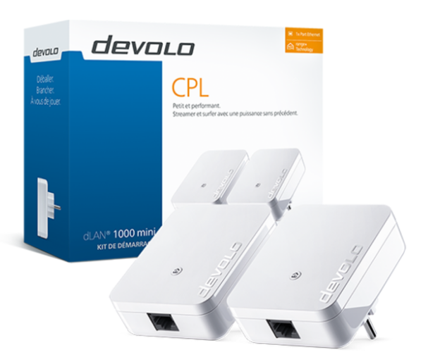 Le nouveau dLAN 1000 mini de devolo offre un accès Internet maximal avec un design ultra-compact. Le port Ethernet de l’adaptateur permet une connexion stable. Grâce à la range+ Technology brevetée de devolo, l’adaptateur permet de couvrir de très longues distances via le réseau électrique. On peut facilement créer un réseau CPL grâce au kit de démarrage dLAN 1000 Mini comprenant deux adaptateurs (prix public conseillé de 89,90 euros).