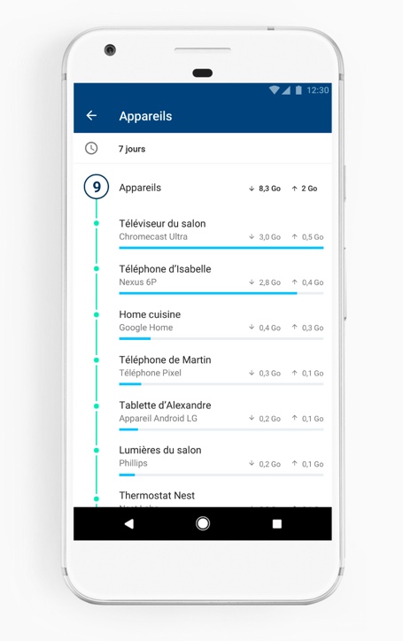 Ce routeur Google Wifi vous offrira une bande passante optimisée en sélectionnant le canal le moins encombré. Celui-ci va donc remplacer la connexion WiFi de votre box Internet, en gardant le même nom de réseaux. Offrant un design sobre et une installation ultra simple, vraiment à la portée de tout le monde, ce routeur est aussi associé à une App qui se chargera de configurer le routeur pour, par exemple, interdire l’accès à Internet à un téléphone particulier ou à un PC durant quelques heures, afin de proposer une petite pause grand air à vos ados. De plus, des statistiques d’utilisation seront disponibles, pour chacun des dispositifs connectés au routeur. Vous saurez donc, en un clin d’oeil, qui mobilise la bande passante en téléchargeant la saison 1 d’American Gods.
