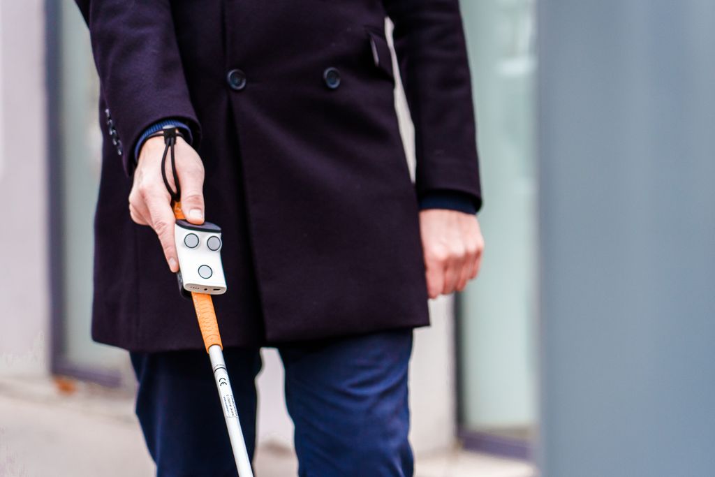 Un boîtier électronique breveté qui rend les cannes blanches intelligentes et qui permet de percevoir les obstacles par du son 3D