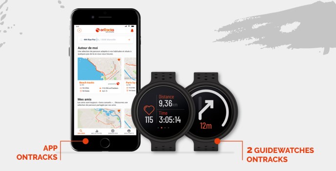 Les « Guidewatches » ont été créées par onTracks pour faciliter la vie des sportifs outdoor et leur permettre une aventure plus sécurisée ! Ce sont les premières montres connectées qui permettent de suivre un parcours sans avoir à regarder une carte ou un GPS, ni subir des instructions vocales intrusives. onTracks est une solution qui s’adresse à tous les pratiquants d’activités outdoor (footing, VTT, randonnée, trail, etc.) et qui s’utilise aussi au quotidien par les utilisateurs de 2-roues en ville.
