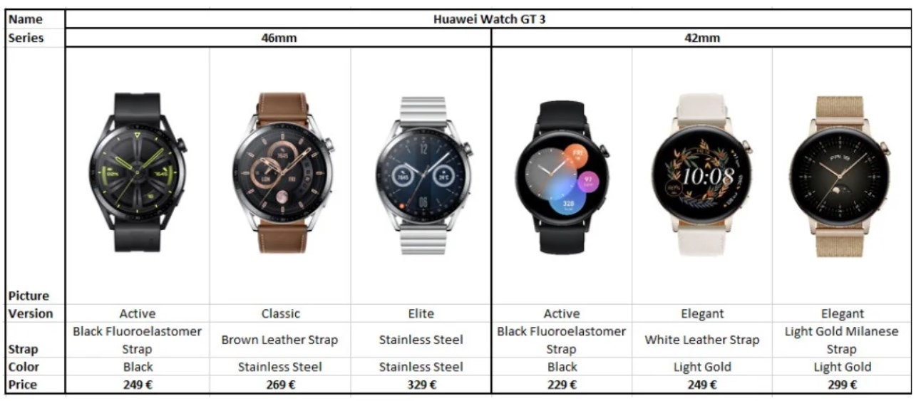 Prix de vente conseillé pour la HUAWEI Watch GT 3 46mm et 42mm :
