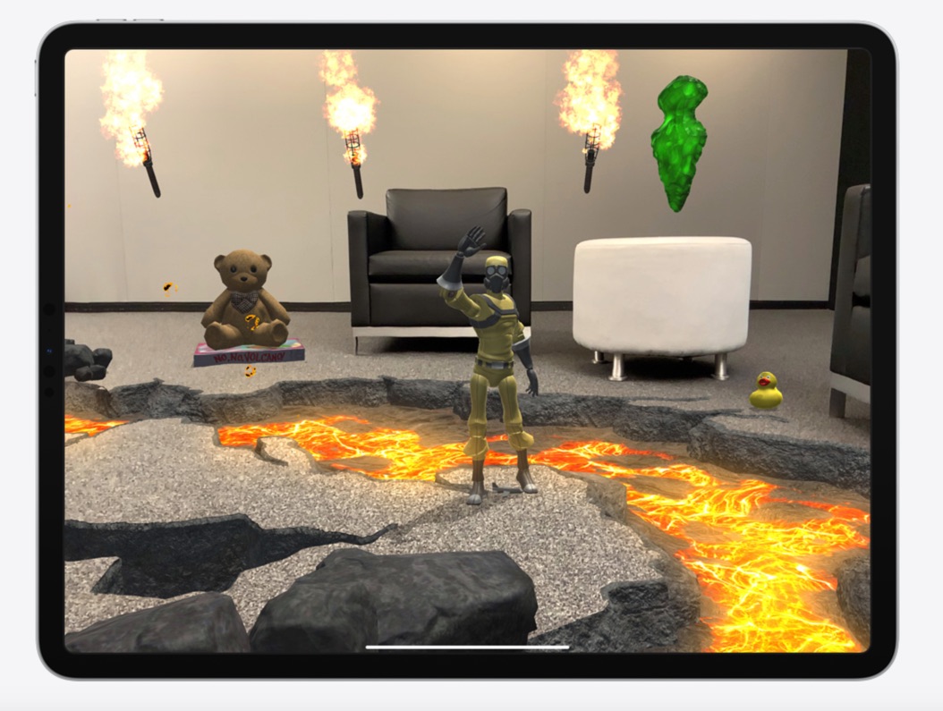 L’objectif d’Apple est de mettre les bouchées doubles en matière de réalité augmentée et dés lors de mélanger éléments réels (une personne qui se déplace dans son salon) à des éléments créé par l’ordinateur comme un habit d’Ironman, des meubles représentés en 3D dans un environnement vide ou encore un dragon vert qui se déplace sur la table du salon.