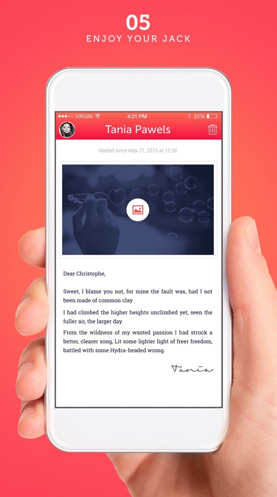 Jack entend bousculer ces pratiques et réintroduire une notion que la plupart des utilisateurs de smartphones avaient oubliée : le plaisir d’attendre.