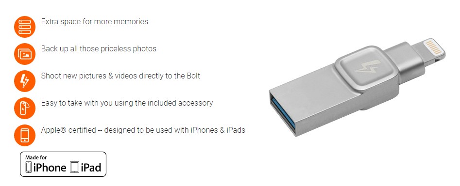 Envie de vider la mémoire de votre belle-mère, pardon, de votre iPhone ou de sauvegarder, en live, des vidéo 4K directement sur une clé USB ou, mieux encore, effectuer un backup de vos photos en un clin d’œil sur le PC de votre copine ? Voici donc le DT Bolt Duo, la première clé à double connecteur USB (type A) et Lightning.