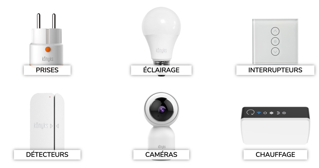 Si chaque appareil peut se piloter à la voix, l’application Konyks permet de créer des automatisations qui simplifient la vie au quotidien. Grâce au détecteur d’ouverture, la lumière du dressing s’allume en ouvrant la porte ou le chauffage se coupe quand une fenêtre est ouverte. Grâce à la programmation horaire, l’arrosage se déclenche le matin ou le Wi-Fi se coupe dans la chambre des enfants à 22 heures. De même, il est possible de piloter sa maison à distance, par exemple pour allumer le chauffage en rentrant de week-end. En regroupant les appareils, il est également possible de contrôler la maison à la voix, par exemple pour éteindre toutes les lumières par une commande vocale en allant se coucher. L’application permet même de gérer les pièces ensemble ou séparées. Tout cela se met en place très simplement en suivant les instructions de l’application.