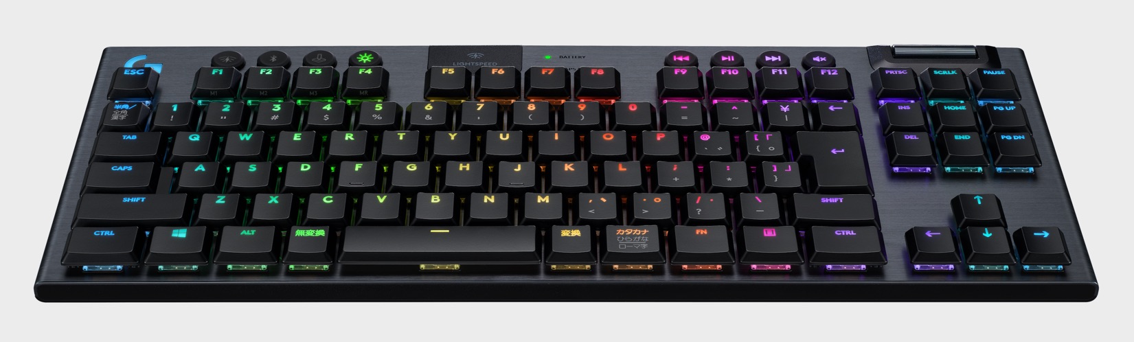 Le G915 TKL dispose de touches mécaniques basses de haute performance, moitié moins grandes que les mécaniques classiques, avec un actionnement 25 % plus rapide (2,0 mm pour les modèles standards) et une frappe plus confortable. Logitech propose de choisir entre trois types de touches : GL Linéaires, GL Tactiles et GL Clicky. La version tactile offre un actionnement perceptible pour les joueurs qui préfèrent un retour de frappe directe, la version linéaire offre pour sa part une frappe fluide. Pour sentir et entendre clairement le retour de frappe, c’est la version clicky qu’il faut privilégier.