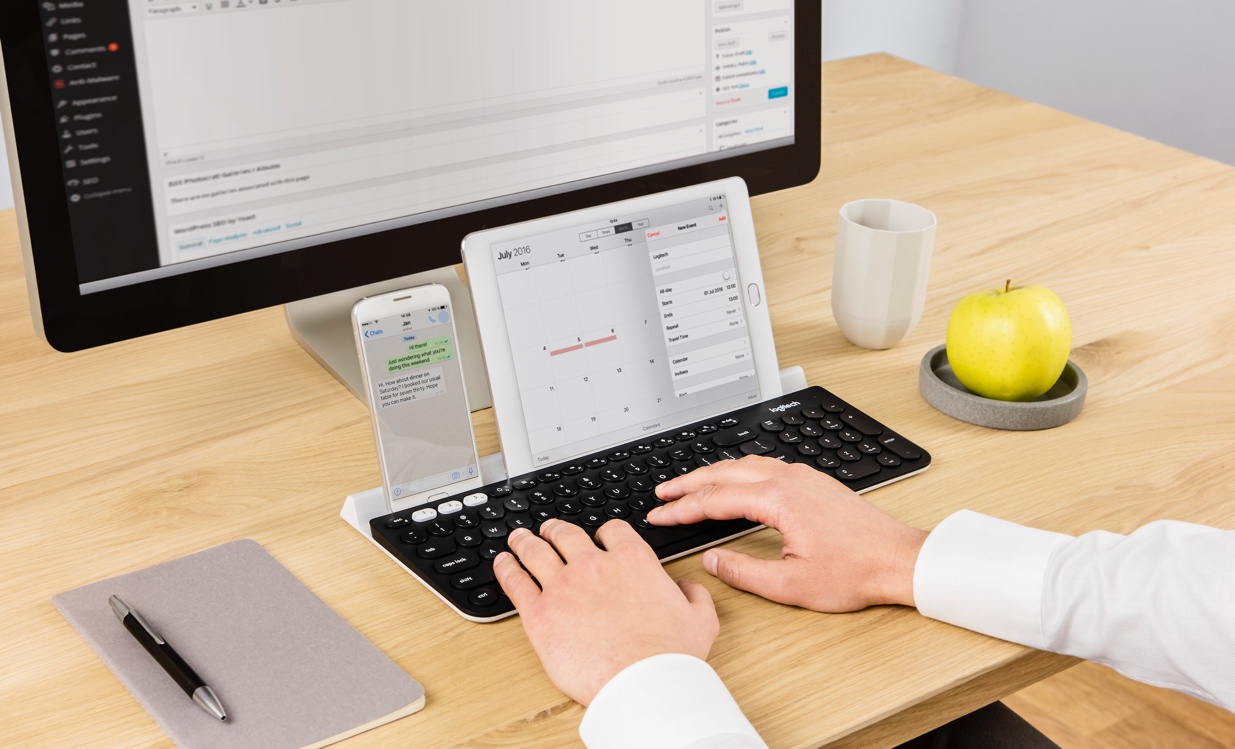 Il est beau, il est fin et il permet d’y connecter votre PC, tablette et téléphone. Son objectif ? Les contrôler tout, pardi ! En effet, ce Logitech K780 se connecte en Bluetooth à votre petit monde électronique et, grâce aux touches blanches 1, 2 et 3, vous allez pouvoir basculer d’un dispositif à l’autre. Génial, non ?