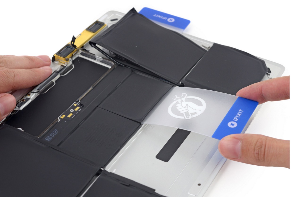 Passons cette parenthèse, loin d’être enchantée, le problème est ailleurs : La quasi totalité des éléments constituant le MacBook est soudé ou, pire, collé. En effet, pour arriver à une autonomie record de 11 ou 12 heures, les ingénieurs d’Apple ont imaginé une batterie composée de plusieurs éléments répartis dans l’ensemble du boitier : Un peu comme le carburant qui entoure le pilote de F1, il baigne dans son essence.