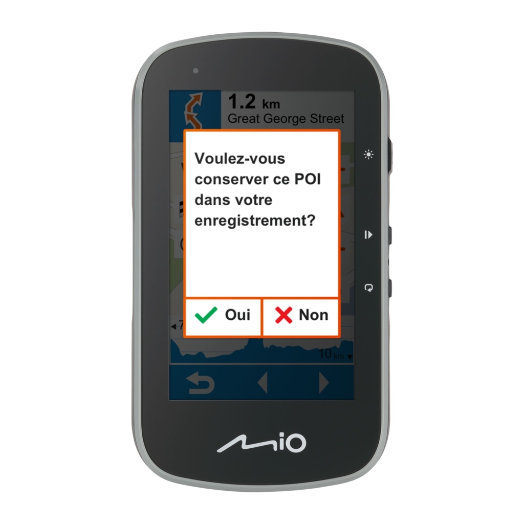 La fonction brevetée « Surprise Me » de Mio vous propose trois itinéraires différents, d’un point A à ce même point (le point de départ est le point d’arrivée) ou d’un point A à un point B. Les cyclistes ont ainsi de nouvelles idées de balade. Cette fonction est destinée à ceux qui connaissent tous les itinéraires dans leur région et veulent être surpris par un itinéraire inconnu.