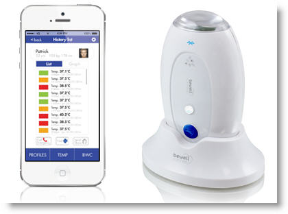 Il fonctionne à l’aide de la technologie sans contact “ThermoFlash” (semblable à celle utilisée dans les aéroports pour contrôler la température des arrivants), qui permet de relever la température d’une simple pression sur le bouton. Grâce à l’application iOS ou Android, vous aurez la possibilité de suivre l’évolution des courbes de température.