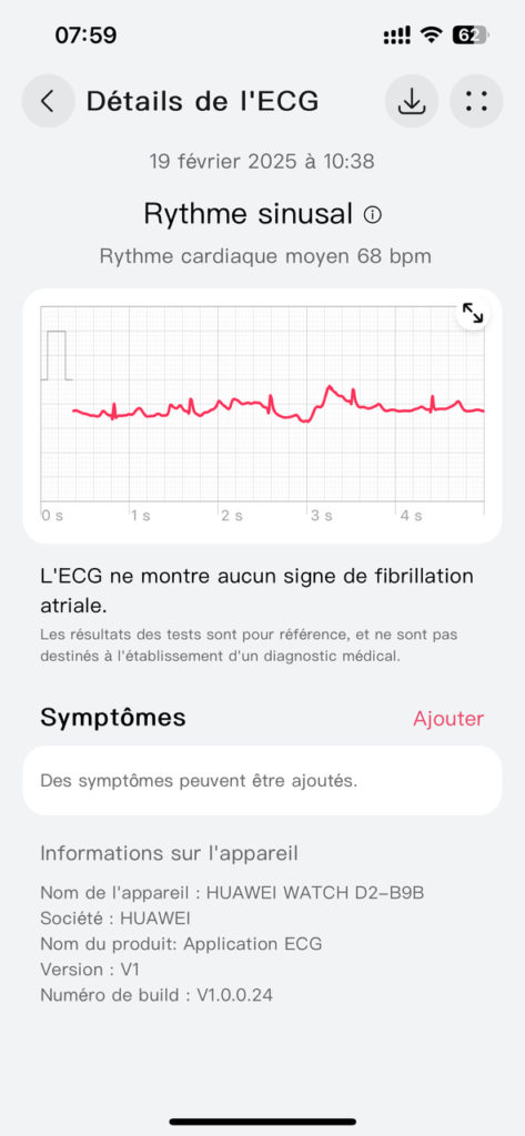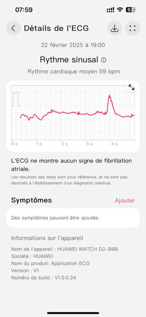 Pour une fois, c’est moi qui ai testé cette montre. Mon modèle habituel (Garmin Epix Gen 2) n’a pas la fonction ECG, et je n’en ressentais pas le besoin… jusqu’à maintenant ! Contrairement à Audrey qui a rencontré quelques échecs de mesure (à cause de son corps bizarre), je n’ai eu aucun souci et la prise de résultats était toujours concluant.