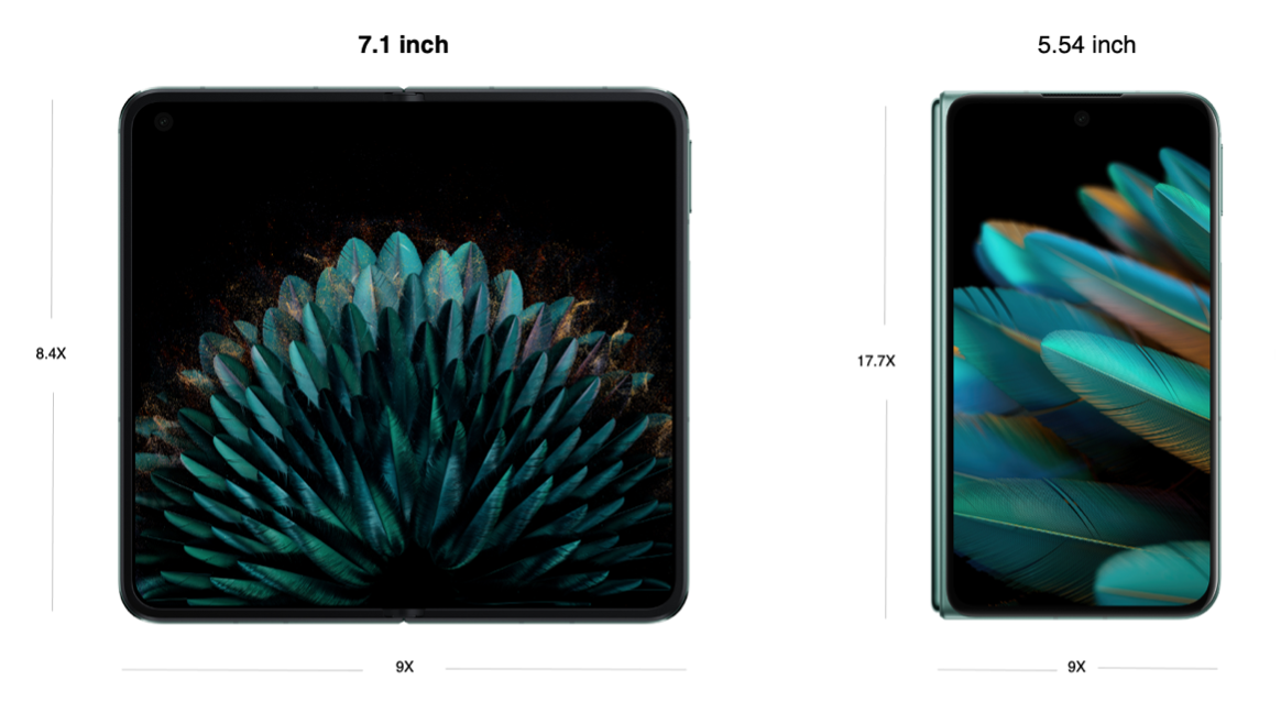 L’écran de 7,1 pouces atteint une luminosité maximale de 1550 nits et présente un film anti-reflet qui améliore la visibilité en extérieur. L’écran externe de 5,54 pouces atteint quant à lui une luminosité maximale de 1 350 nits et présente un cadre réduit de 47 % par rapport au Find N.