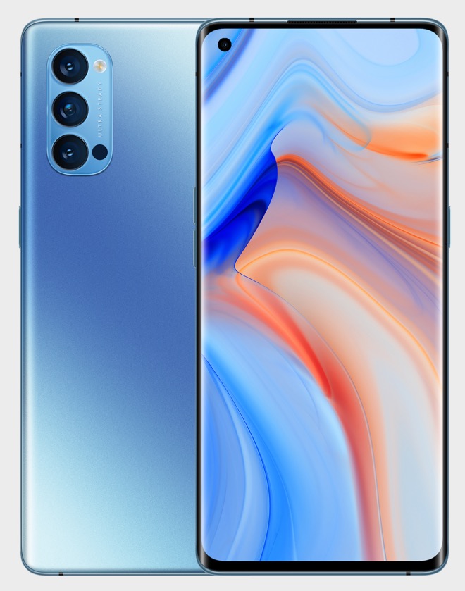 - Prix de l’OPPO Reno4 avec RAM 8 Go + ROM 128 Go, disponible en option Galactic Blue et Space Black : 599 EUROS.