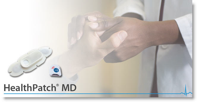 qui sera capable de mesurer et d’envoyer des données au smartphone du patient : Le HealthPatch MD Vitals