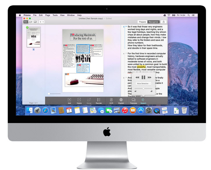 Petit rappel pour ceux qui ont immigrés dans une grotte sibérienne : Prizmo est une application de scanning avec reconnaissance optique de caractères (OCR) qui supporte 40 langues ainsi qu’une série d’outils d’édition avancés, sans oublier une synthèse vocale et un support d’iCloud. Elle est disponible sur MAC OSX et iOS.