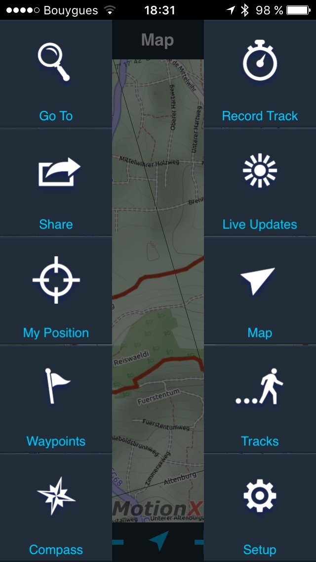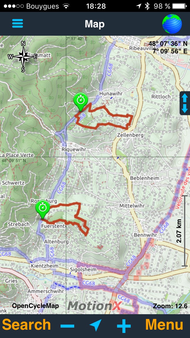 Ensuite, vous allez installer, sur votre smartphone, une App qui vous permet d’obtenir une cartographie identique sur votre téléphone et, évidemment, d’importer le tracé que vous avez créé. J’utilise, sur iPhone, Motion-X GPS. Il n’existe pas sous Android mais vous pouvez vous rabattre sur View Ranger sous Android et iOS.