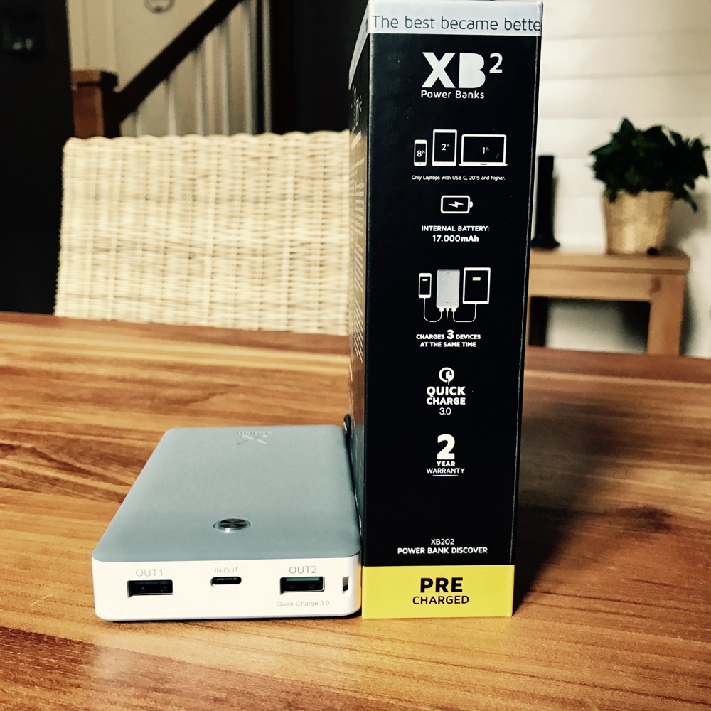 Sous son apparence de petite brique, ce Xtorm Powerbank Discover dispose d’une puissance de charge de 17.000 mAh et reposera précieusement à côté de votre notebook capable d’être rechargé via un port USB de type C. Les gars d’Apple venant de sortir, en septembre, leur nouveau MacBook Pro, il me paraissait évident de le connecter à celui-ci. Néanmoins, il vous sera possible d’y recharger jusqu’à trois appareils à la fois.