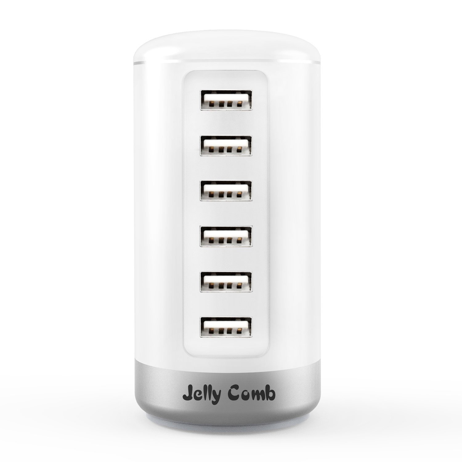 Ce chargeur 6 ports, distribué par Jelly Comb et disponible sur Amazon, permet de recharger 3 téléphone et 3 tablettes à la fois ou 2 téléphones et 4 tablettes ou … OK, j’arrête là, vous allez vous enfuir vers l’acerbe concurrence, souvent mois décalée, il faut le dire. Soyons modeste… ou si peu.