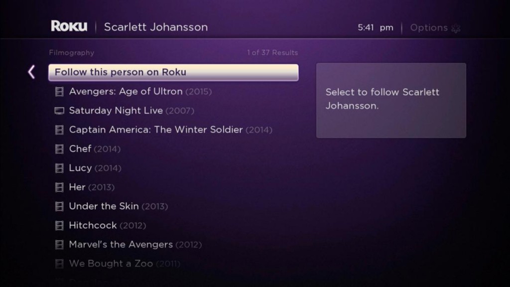 La nouvelle version de l’interface embarque un système de “Followers” afin de suivre ce que vos amis regardent, l’évolution d’un acteur ou d’un film ainsi qu’un “Universal search” capable de rechercher un mot clés dans les différents services de streaming proposés.