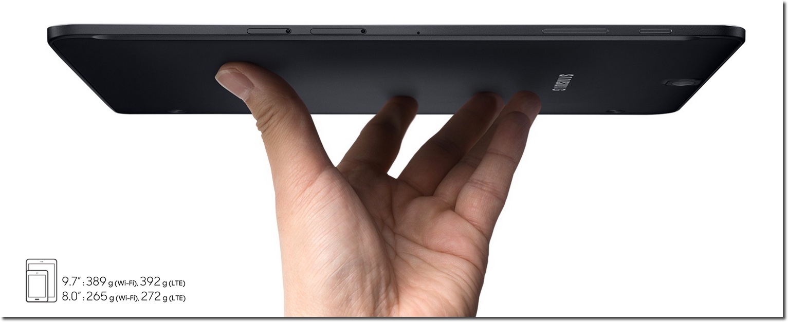 Cette nouvelle tablette nous offre un format quasi idéal pour la lecture et dispose donc d’un excellent ratio encombrement/confort avec ses 8 pouces de diagonale. Comme chez nos amis d’Apple, Samsung mise sur un format 4:3 à positionner verticalement et disposant d’un écran AMOLED QXGA de 2048 x 1536 pixels.