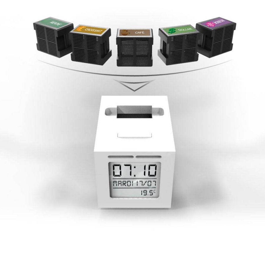 Le système fonctionnera à l’aide de petites capsules à insérer dans le réveil cubique. Chacune d’elles pourra vous réveiller 30 fois et seront vendues par paquets de deux capsules vendus 10€. Evidemment, si vous ne vous réveillez pas dans les trois minutes, un jolie mélodie viendra vous sortir des bras de Morphée. Rassurant.