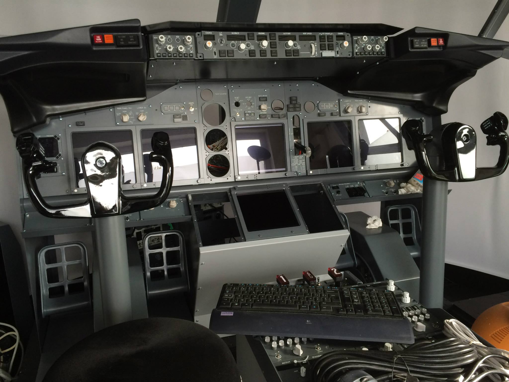 Pour rappel à l’attention des non initiés, le 737NG est un avion de ligne très répandu, c’est par exemple l’élément principal des flottes de Ryanair ou JetAirFly, pour ne parler que de ces deux compagnies low cost belges bien connues. Pierre s’est assuré que le cockpit soit monté dans une structure parfaitement à l’échelle de son modèle.