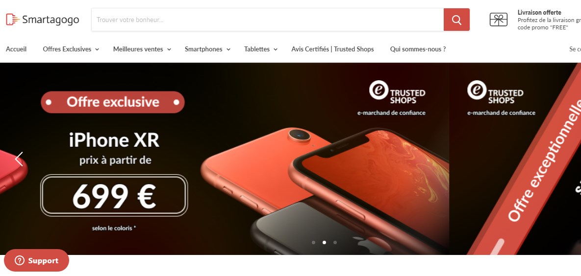 Bref, Smartagogo (Quel sympathique nom) nous emmène sur les chemins de traverse et nous propose du neuf à très bon prix. La boutique se dit spécialisée dans les grande marques et propose dés lors de l’Apple, du Samsung et du Huawei, mais cette liste n’est pas exhaustive. Au programme, principalement des smartphones et des tablettes.