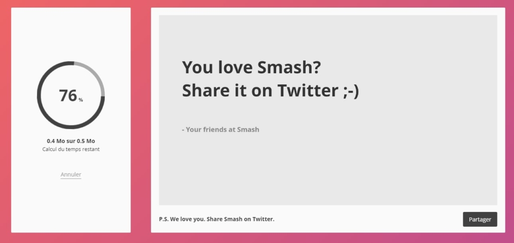 Depuis des années, nous sommes habitués à utiliser des plateformes comme WeTransfer pour envoyer des fichiers potentiellement volumineux à des amis ou collègues. Toutefois, un acteur français existe depuis quelques temps et ce n’est pas Jean Dujardin, mais bien “Smash”.