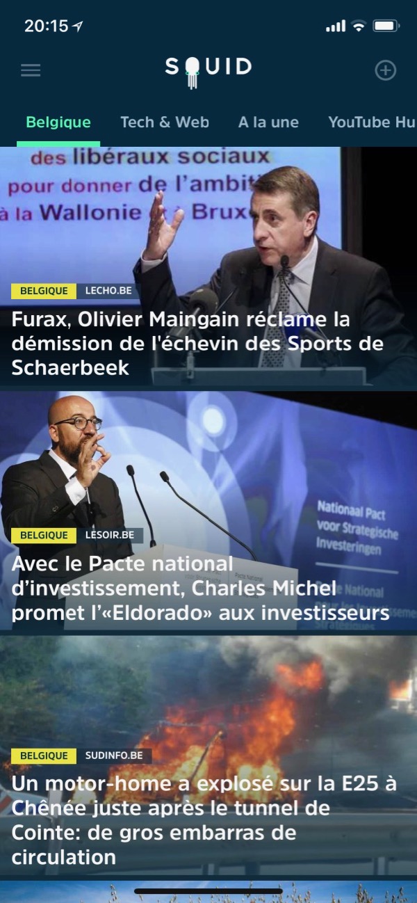 J’avoue, je ne connaissais pas Squid. J’avoue, j’utilise depuis quate ans le célèbre Feedly pour effectuer docilement la veille technologique sur plus de 100 sites et blogs dans le monde afin de vous offrir de l’information “up-to-date” et un tant soit peu censée. Toutefois, pour le commun des mortels connectés, Feedly demande une configuration particulière et, surtout, la capacité à connaitre les sources que vous souhaitez consulter. J’avoue, j’ai adoré Squid.