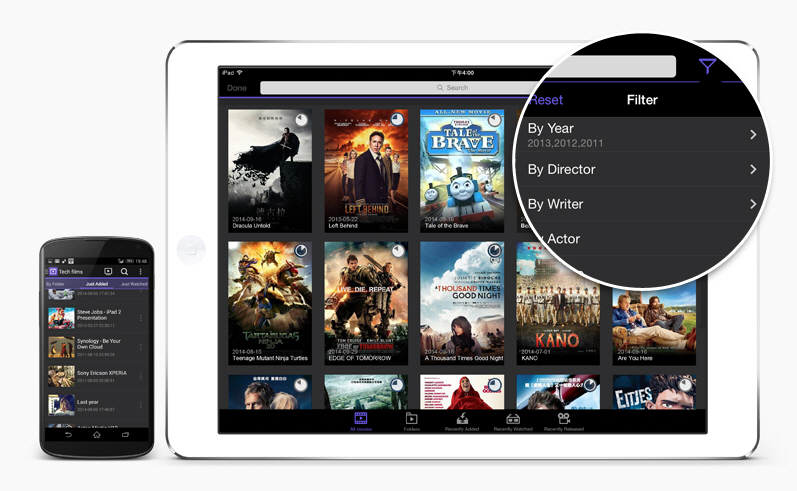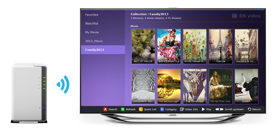- Organiser vos films et les regarder sur votre téléviseur classique via DLNA ou votre SmartTV