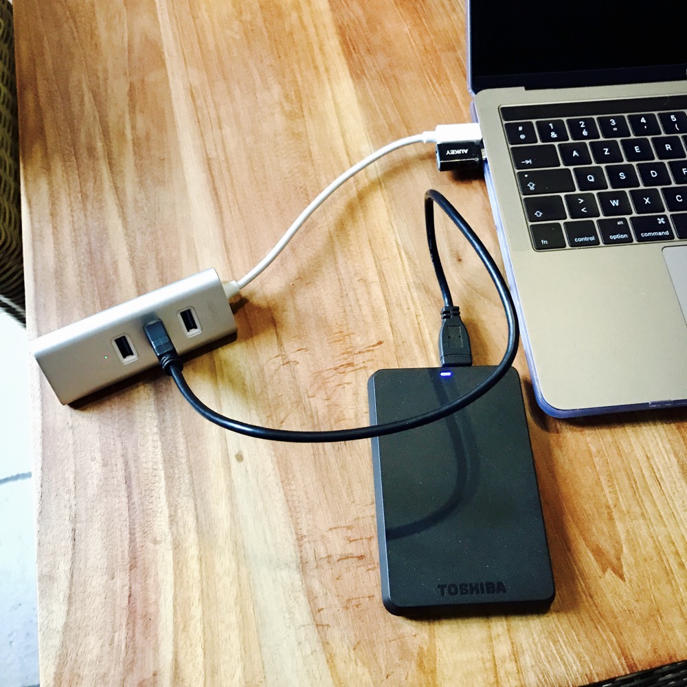 Moralité, je me suis décidé à acheter des adaptateurs USB vers USB Type C pour agrémenter mes clés USB, adaptateurs et autres disques externes d’une jolie fiche supplémentaire. C’est d’un joli ! Vous dépensez plusieurs plusieurs billets de 1000 € pour avoir en main une machine au design exceptionnel et tout cela est expédié au trente-sixième sous-sol du mauvais gout en moins de dix secondes. Alors, oui, il existe de petits hub USB pour y connecter plusieurs dispositifs. J’en ai même trouvé un qui ressemble à ce qu’Apple fait de mieux, sans le prix. Je vous laisse d’ailleurs quelques photos, ça vous fera la journée.
