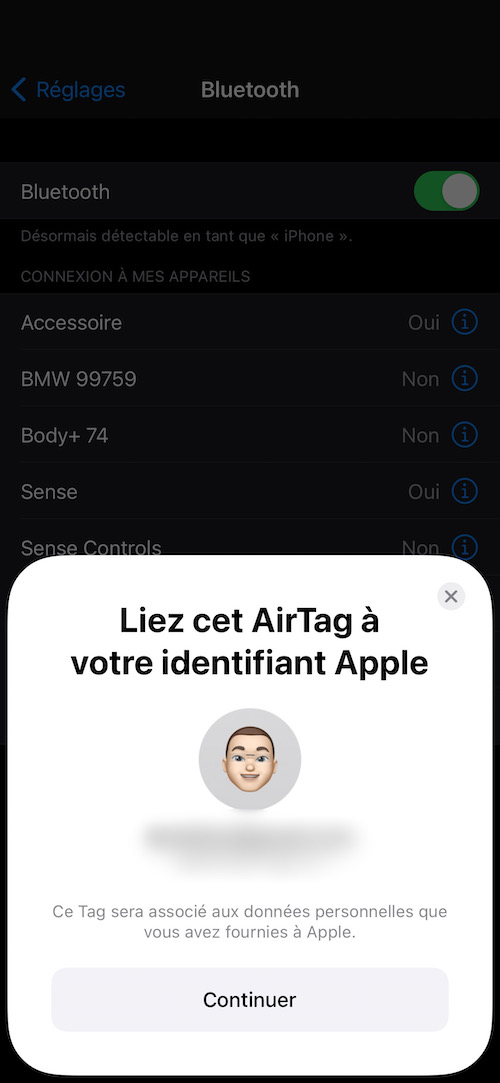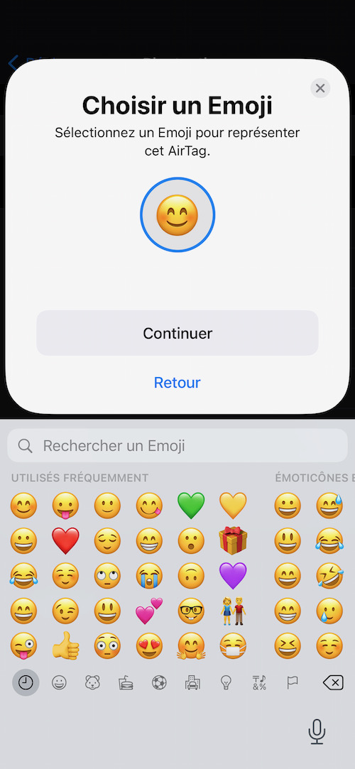 Ensuite, il vous sera demandé quelques confirmations pour fournir un nom ainsi qu’un petit emoji qui apparaîtra sur la carte. Enfin, vous pourrez l’associer à votre compte Apple afin qu’une autre personne ne puisse en prendre la propriété.