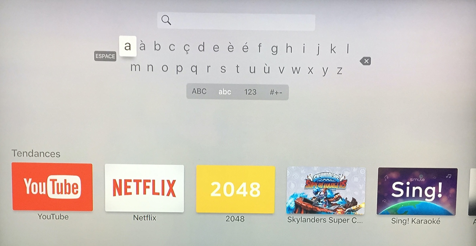 Ça y est tout est enfin prêt pour profiter de la « télévision de demain » dixit Tim Cook. Je fais le plein d’apps dans l’Apple Store. Pour être honnête, j’avais préalablement identifié les apps qui m’intéressaient sur Slide To Play, un site très pratique. Et là premier hic, l’encodage dans la recherche (ou de son identifiant/mot de mot de passe) est extrêmement laborieuse car il faut sélectionner lettre par lettre.