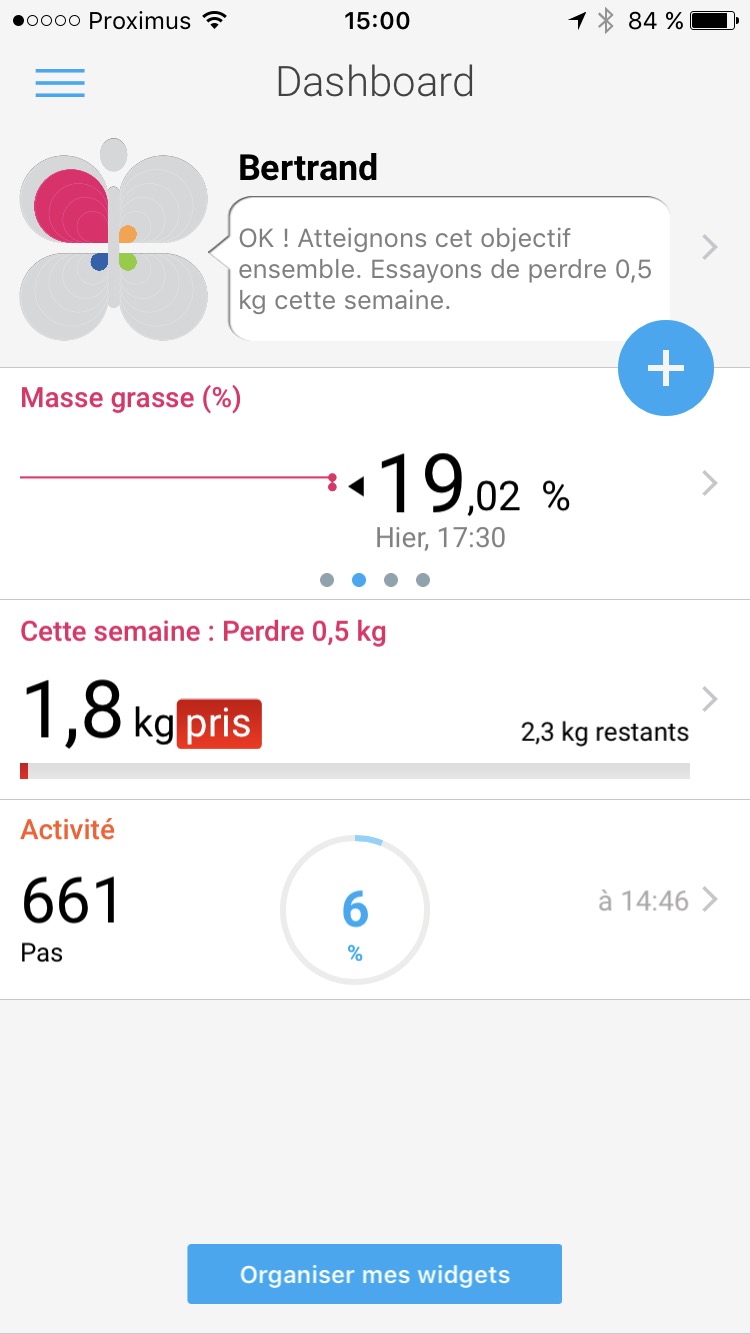 En effet, la Withings Body n’a pas besoin de vous demander qui vous êtes, elle le sait déjà. Vous montez dessus, vos initiales sont affichées sur le petit écran pour que, ensuite , vos mesures soient synchronisées sur le compte de l’utilisateur. Petit point d’attention qui va vous éviter une abondante transpiration d’angoisse : Les autres pensionnaires nus de la balance n’auront pas accès aux données des autres. Ouf, personne ne verra que vous aurez prix 3% de graisse supplémentaires après ce repas “Full-frites-pitta-gyros-sauce-à-l’ail” au retour du concert de Julien Doré … ou de la soirée dans un resto gastronomique où votre estomac criait famine lorsque vous avez franchi la porte de sortie. Il est vrai que l’ “Endive confite dans son emballage de Pata Negra posée sur son lit de pommes grenailles concassées et dorée au pavé affiné” était une peu frugale. Bref, c’était un bête chicon au gratin pour bobo bio du BW (Amis français, je vous ai déjà expliqué ce qu’était le BW (On prononce “BéWéééé”, rendez-vous sur cet article, j’en ai marre de me répéter. Zut.). Pour les gens du BW, ne m’en voulez pas, je vous aime quand même.