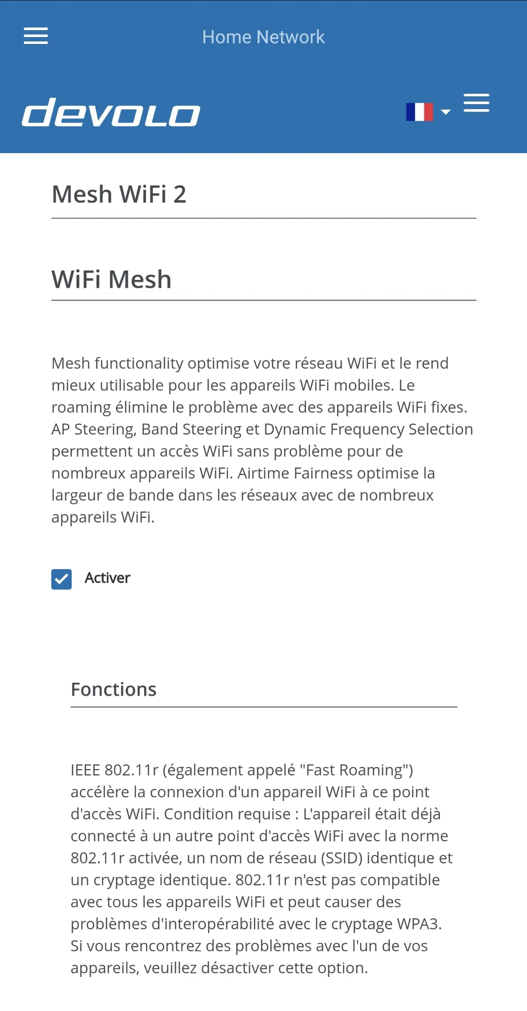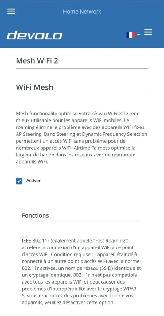 Un autre atout du kit devolo Magic 2 Wifi 6 est la fonction Mesh (configurable dans l’application). Cette fonctionnalité permet de se déplacer partout dans l’appartement sans avoir de coupure de signal même lors de changement de connexion.