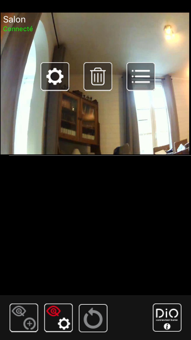 L’App DiO Cam est assez ressemblante à celle utilisée pour allumer mes lumières via la DiO Box, c’est-a-dire austère, sombre et pas très conviviale. Le tout baigne dans une impression de “beta test” : Libellés des boutons tronqués, icônes basiques. Un effort sur l’ergonomie est vraiment à prévoir si la marque veut percer dans le domaine de la domotique grand public. Mis à part ce bémol, la caméra a remporté son petit succès lors des tests.