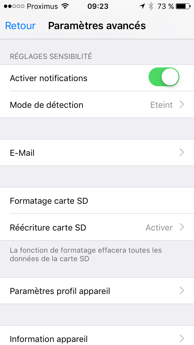 Une fonction présente sur toutes les caméras de la concurrence est, bien évidemment, la détection de mouvement. Chez DiO, celle-ci s’opère assez simplement et le choix de la notification est double : Soit vous recevez une alerte sur votre téléphone, via une notification de l’application ou, plus simple, vous la recevez directement dans votre boite mail, ou celle d’une autre personne qui n’a pas très envie d’installer l’App. En effet, l’écran de configuration prévoit l’utilisation d’une adresse email (Gmail ou autre) et cela fonctionne parfaitement, mis à part qu’aucune pièce jointe n’est fournie pour lever le doute sur cette alerte.