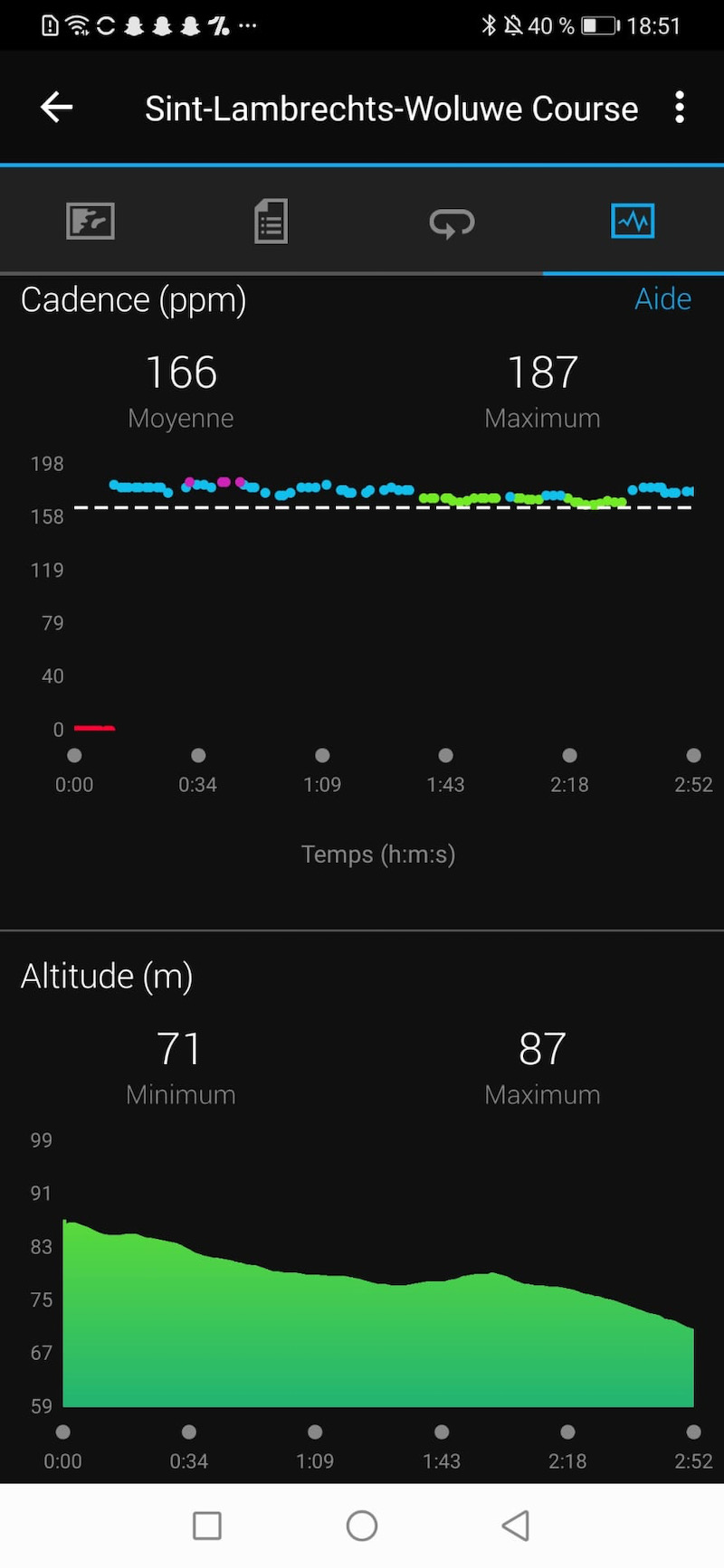 Sur cette montre, il est impossible de voir toutes les données enregistrées, il faut passer par l’application Garmin Connect, identique pour toutes les montres de la marque (excepté la Garmin junior). Il n’a pas fallu plus de 1 jour pour que Matyas la maîtrise mieux qu’Audrey qui l’a utilisé 2 mois.