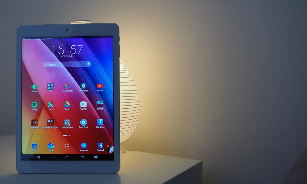 Côté capteur photo, il offre 8 Mpixels à l’arrière et 2 Mpixels à l’avant, suffisant pour Skype. Son poids affiche 540 grammes sur la balance (100 grammes de plus qu’un iPad Air) et ses dimensions au format 4/3 en font un agréable compagnon de lecture et de consultation de sites d’informations. C’est dans ce registre que j’ai d’ailleurs testé cette tablette : réactive et jamais en défaut. Seul bémol, la surface de l’écran est légèrement rugueuse et manque quelque peu de souplesse.