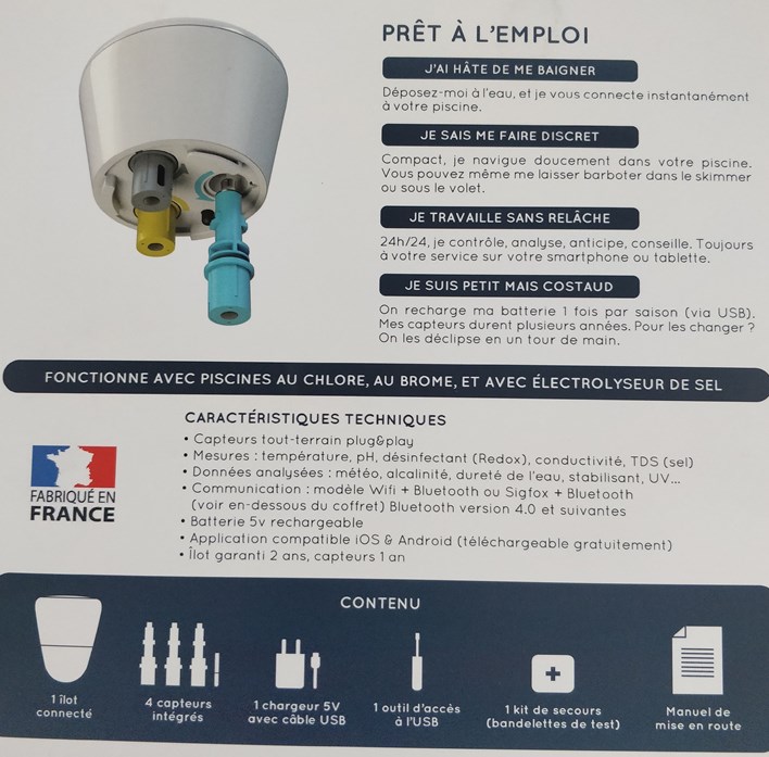 Quelques courtes minutes après son immersion, ICO enregistrait, d’abord pour lui uniquement, les données clés d’une eau de piscine et les fournissait à l’application dès sa première connexion au Wifi de la maison :