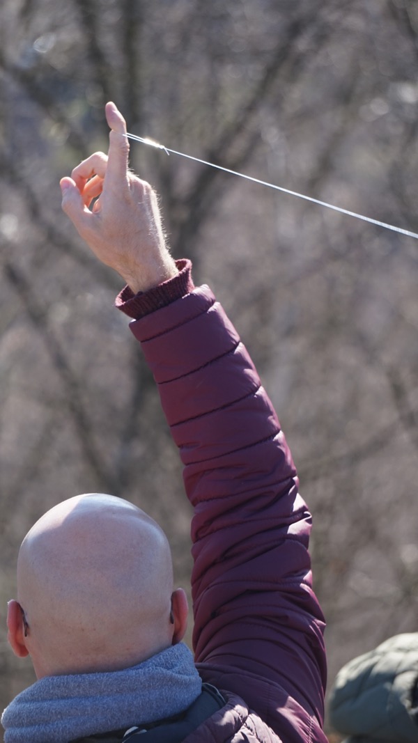 Il suffit de visser le câble de pêche (oui ça y ressemble) fourni à la caméra et d’effectuer des mouvements de rotation amples et pas trop rapides autour de soi et c’est tout!
