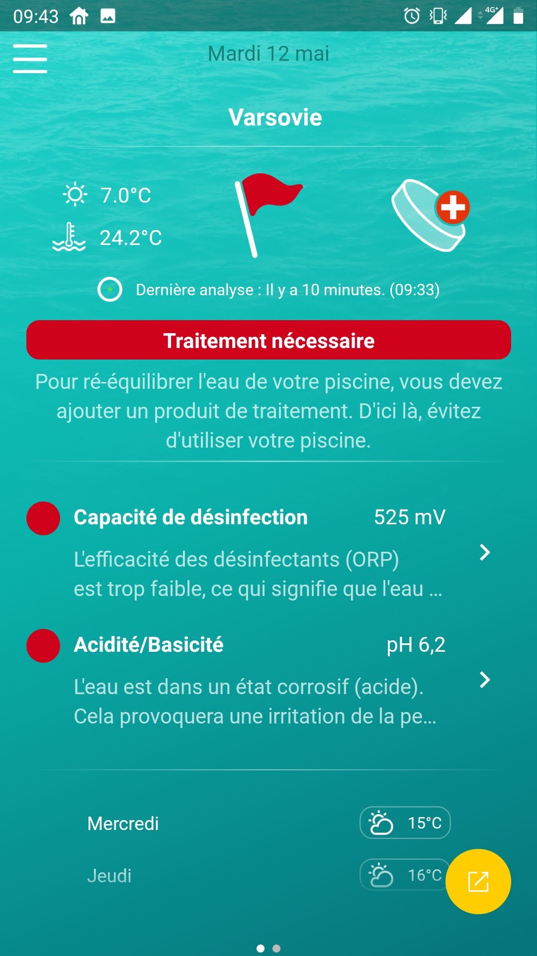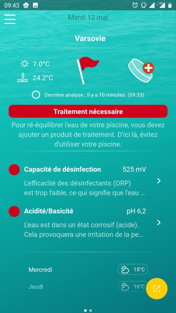 Et au niveau technologique, est-ce que ECO se défend bien ? Même si visuellement, ce n’est pas le plus beau de la classe, la rapidité d’acquisition et la puissance de son signal bluetooth impressionnent réellement. Confortablement installé dans mon bureau au premier étage à une bonne dizaine de mètre de la piscine, il est souvent arrivé que les mesures remontent et que je reçoive quelques recommandations en pleine réunion sur le budget annuel… Sinon, un passage à proximité de la piscine suffisait pour acquérir les derniers relevés.