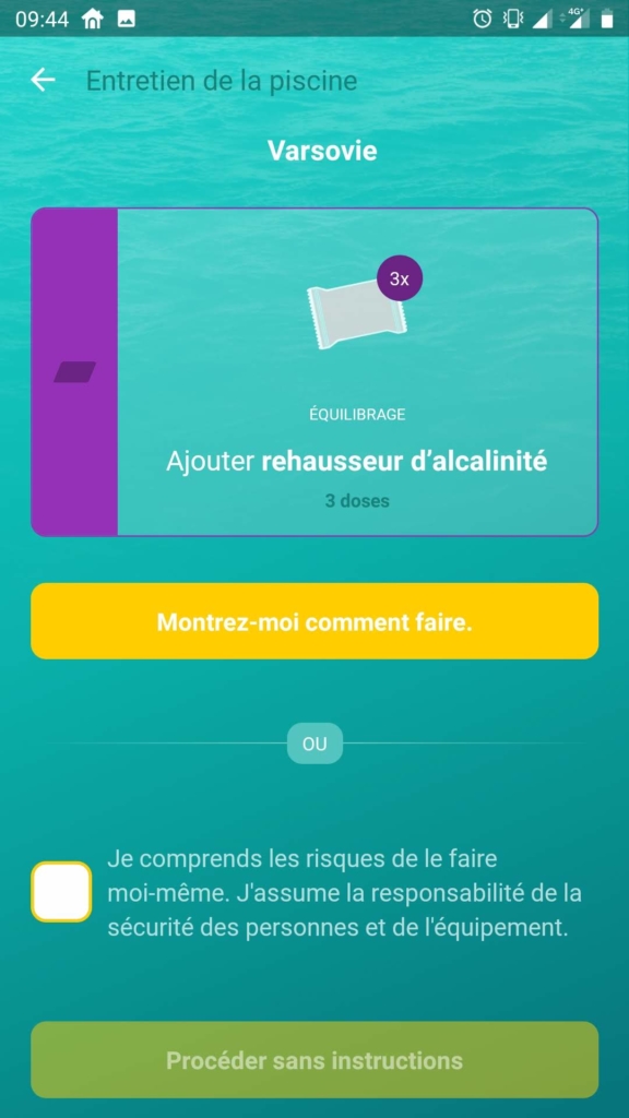 Que vous soyez un manuel expert en Chlore et rehausseur de PH ou comme moi, un simple utilisateur de piscine Lambda, IOPOOL et ECO ont une solution pour vous. L’application vous guidera pas à pas jusqu’à l’ajout des produits dans la piscine. Vous pouvez, néanmoins, tout simplement, passer cette étape et ajouter les produits à votre guise.